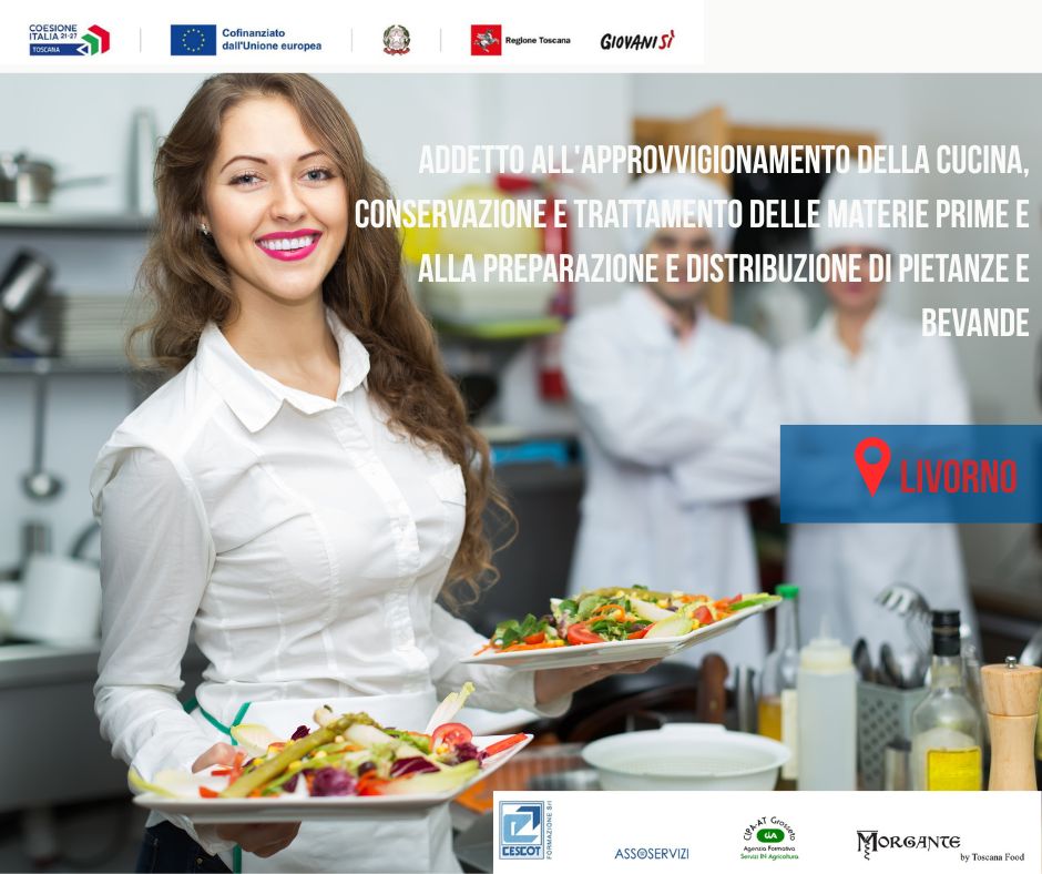 Il corso ha come obiettivo la formazione della figura professionale di Addetto all'approvvigionamento della cucina, conservazione e trattamento delle materie prime e alla preparazione e distribuzione di pietanze e bevande , che è molto richiesta dal settore della ristorazione